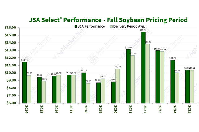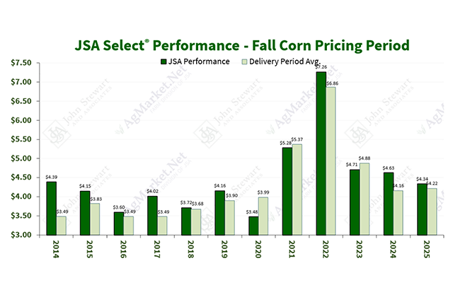 JSA Select Pricing® is a grain marketing option available through Innovative Ag Services that helps bring structure to pricing a portion of your corn or soybean bushels.With this program, John Stewart & Associates (JSA) actively manages pricing decisions on your behalf during a defined window. Using market fundamentals and technical signals, they monitor the market throughout the growing season and execute pricing when opportunities arise.